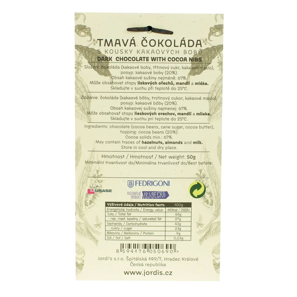 Hořká čokoláda 67% s kousky bobů - Jordis