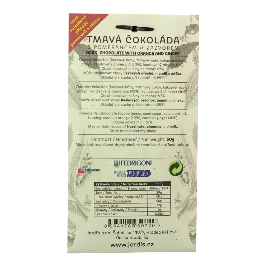 Hořká čokoláda 67 % se zázvorem a pomerančem - Jordis